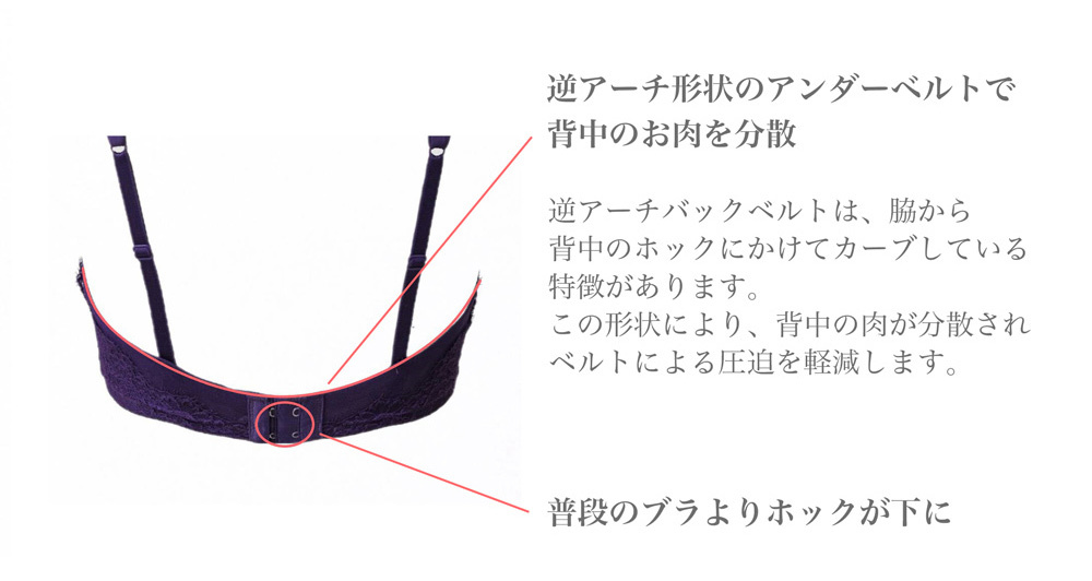 こちらの商品は、通常の後ろホックの位置よりも下位でご着用ください。